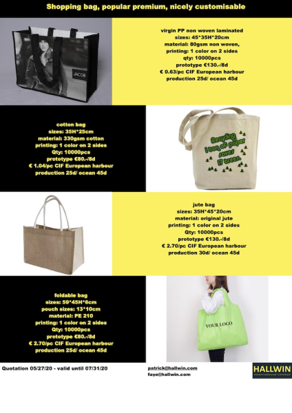 Cotton bag is the most practical and appealing promotional product with a large printable area and extremely versatile.